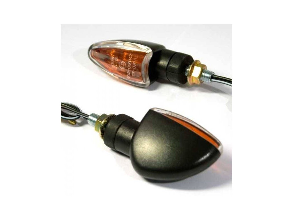 Blinkry Arrow na motorku, vnější čiré vnitřní oranžové, černá, krátké, M8
