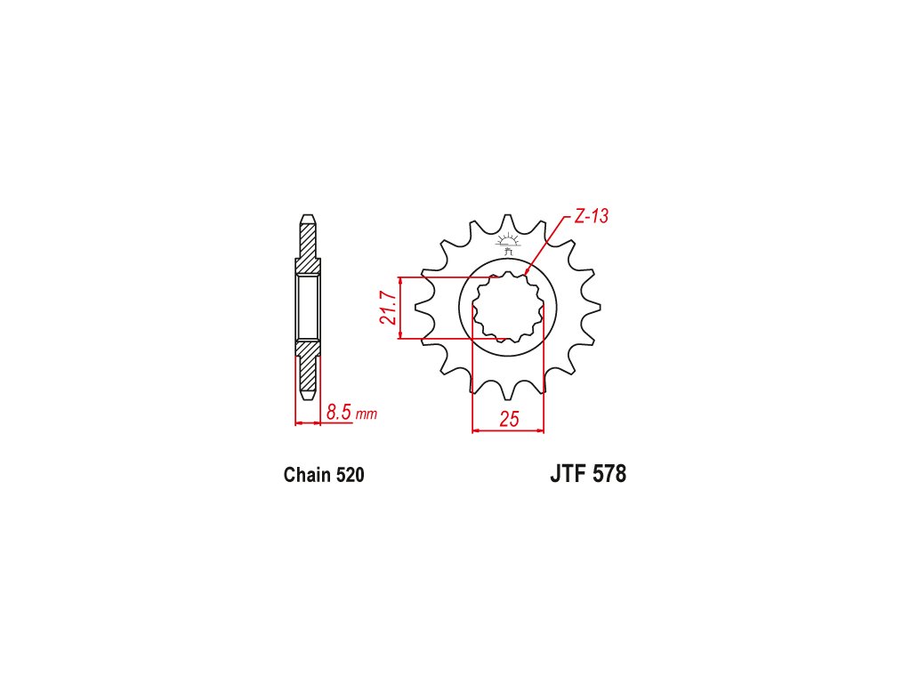 JT JTF578.14 Přední kolečko (pastorek), 14 zubů, 520
