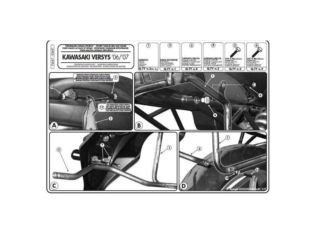 Kappa KL447 držáky bočních kufrů kufry MONOKEY, nebo RETRO FIT KAWASAKI Versys 650 (06-09)