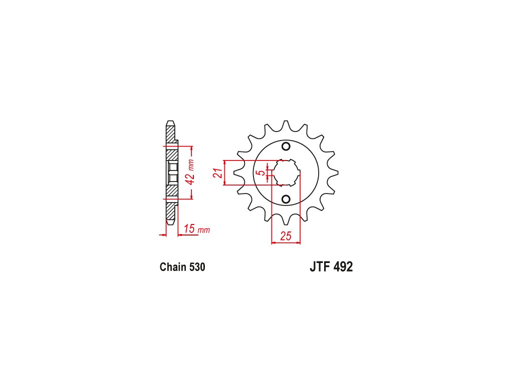 JT JTF492.15 Přední kolečko (pastorek), 15 zubů, 530