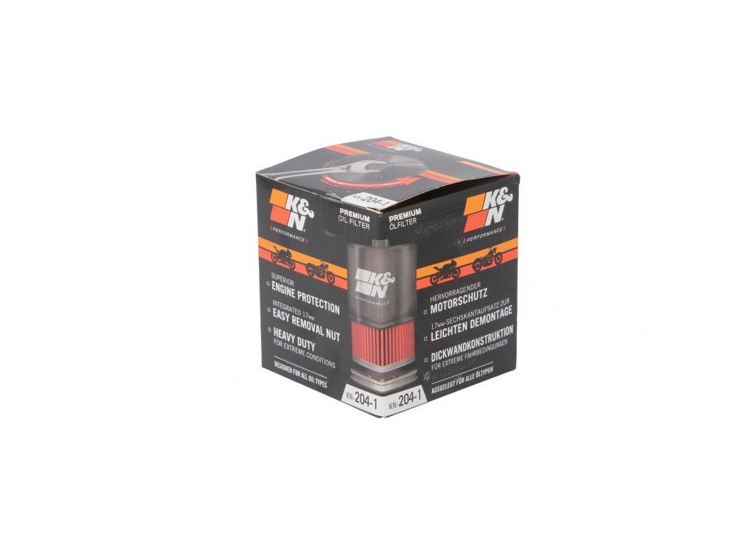 KN-204 olejový filtr K&N. Špičkové olejové filtry spojující nejlepší filtrační účinnost s použitím těch nejlepších materiálů. Oproti olejovým filtrům jiných výrobců, vynikají filtry K&N použitím lepšího filtračního materiálu, sílou vnitřní mřížky filtru a jedinečným zpracováním. Plechové filtry mají na těle 17mm šroub pro snadnou montáž a demontáž filtru a otvor pro připevnění filtru (pro závodní účely).