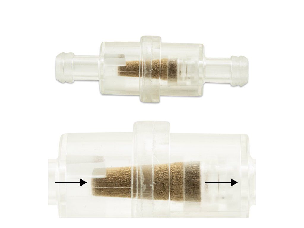 Detailní popis Palivový filtr 8mm (5/16''), O=60mm, délka 60mmbenzínový filtr 5/16" 8mm, O=21mm, (kovové sítko), kulatý, průhledný, celková délka: 60mm