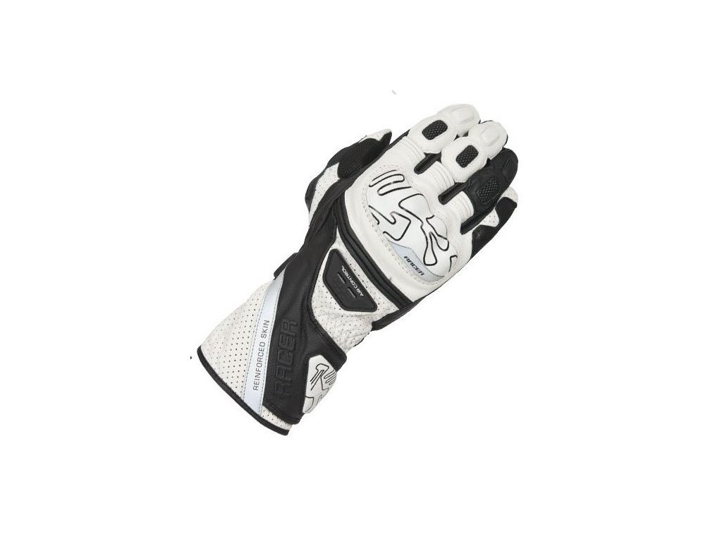 Racer Grip pánské bílé sportovní kožené rukavice na motorku, velikost LDoplňkové parametry