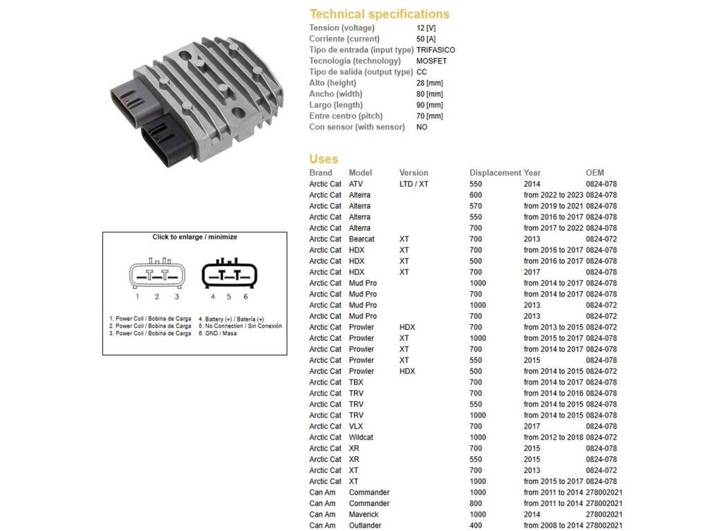 je přímou náhradou originálních dílů OEM není nutné žádné přepojování elektrického systému pro zástrčky nebo kabeláž instalace regulátoru nevyžaduje zásah do konstrukce motocyklu nebo jeho továrního nastavení Společnost DZE je jedním z největších jihoamerických výrobců automobilové elektroniky (úzce spolupracuje se společnostmi Volkswagen, Ford, Zanella a GM) a specializuje se na výrobu náhrad originálních regulátorů napětí a zapalovacích modulů pro japonské a evropské motocykly. Vyrábí se v Argentině Bezpečnostní a uživatelská příručka produktůDoplňkové parametry