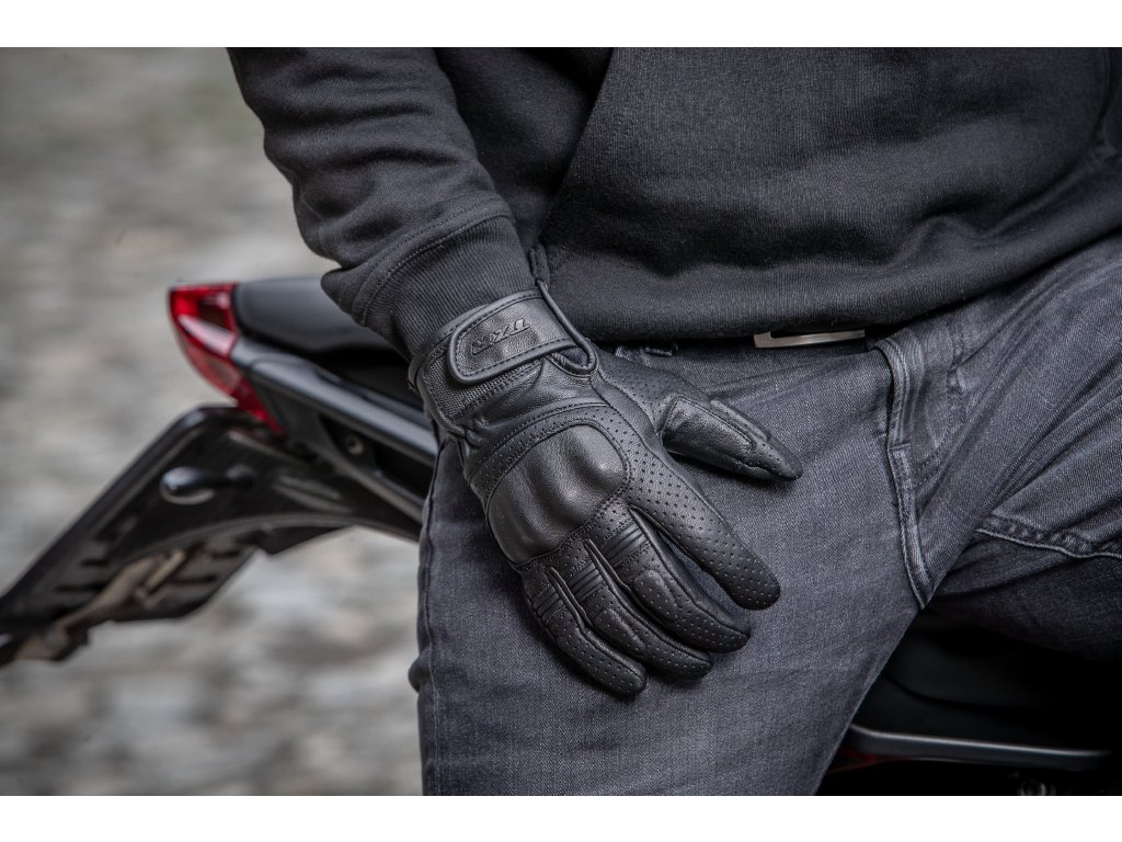 Materiálem je kvalitní kozí kůže, která je ušita bezpečnostními švy a na dlaních je zdvojená. Z vnitřní strany je použita podšívka ze 100% polyesteru pro maximální komfort. I tyto rukavice samozřejmě obsahují bezpečnostní prvky - konkrétně PU chránič kloubů a pěnové chrániče prstů. Chránič kloubů je pokryt vrstvou kůže, která jej "schová" a tím pádem není narušen unikátní styl rukavic. Upravitelnost na ruce zajišťují stahovací pásky na manžetách.