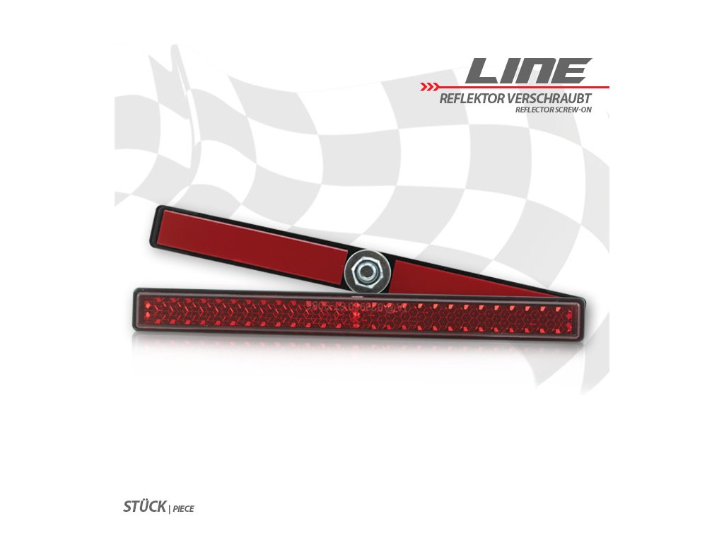 samolepící odrazka na motorky a skůtry, hranatá, červená, 123 x 12,5 mm M5, homologovaná