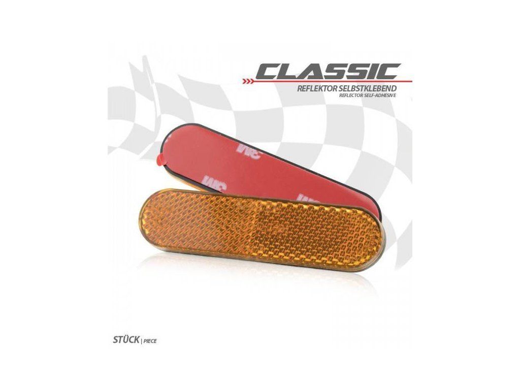 Samolepící odrazka na motorky a skůtry, žlutá oválná, 90 x 24 x 8 mm, homologovanáDoplňkové parametry