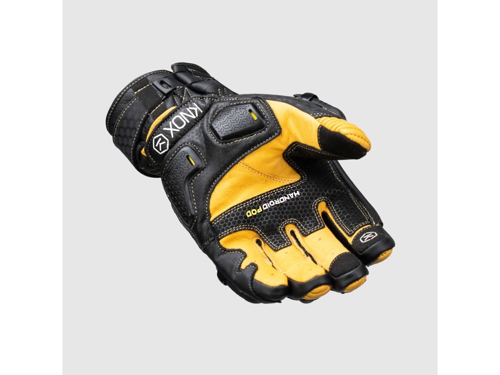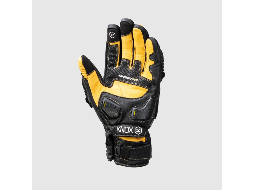 Rukavice jsou vybaveny SPS chrániči na dlani a exo-skeletonovými výztuhami na prstech, které poskytují ochranu proti nárazu a oděru a zároveň přispívají k výraznému vzhledu rukavic. Knox Handroid jsou vybaveny jedinečným systémem zapínání Boa, který pokaždé zajistí dokonalé a bezpečné upevnění.