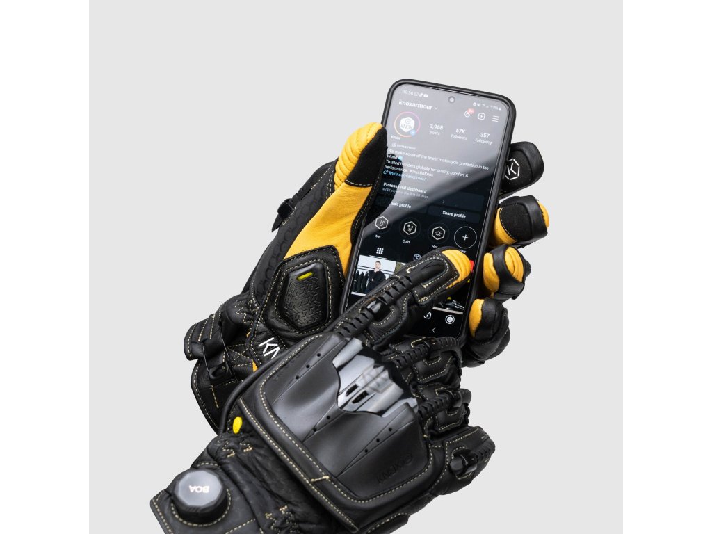 Nový systém zapínání na zápěstí BOA, který je exkluzivním prvkem pro značku Knox umožňuje jezdcům nastavit přesnou sílu upevnění.