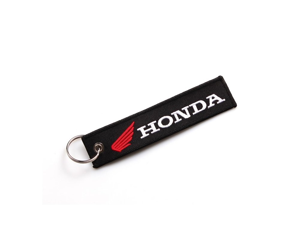 Textilní klíčenka Honda je drobnost, která jistě potěší každého fanouška značky. Na jednoduchém černém podkladu z obou stran krásně vyniká červeně vyšité typické okřídlené logo a bílý nápis Honda. Kvalitní zpracování a příjemný materiál přívěšku, dodáváme včetně kroužku pro uchycení.