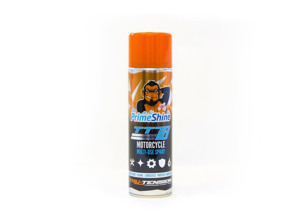 Špičkový čisticí a mazací sprej pro motocykly. TT78 je sprej typu „vše v jednom“ výsloveně navržený k čištění a ochraně dílů motocyklu a zároveň zanechává vysoce lesklý povrch. TT78 je ideální pro čištění a mazání téměř všech částí motocyklu a zároveň poskytuje odpuzující vlhkost a ochrannou vrstvu proti korozi.Doplňkové parametry