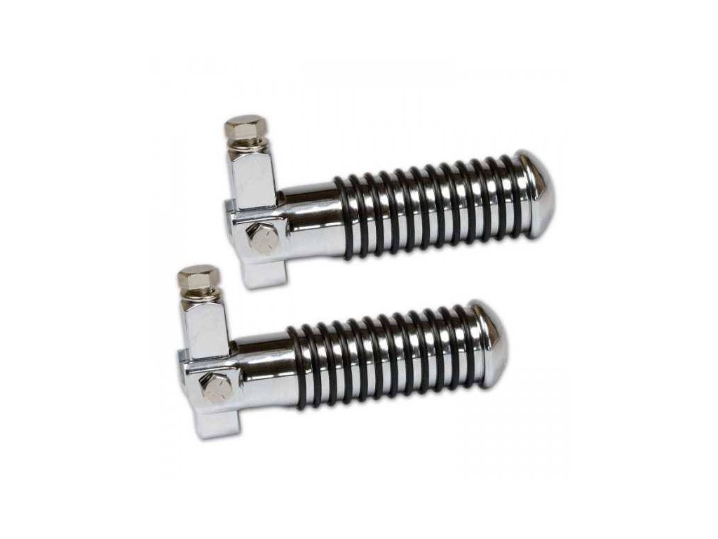 Detailní popis Univerzální chromované stupačky Sundance pro řidiče na motorku s gumovými kroužkyPřední univerzální chromované stupačky Sundance pro řidiče na motocykl s gumovými kroužky.