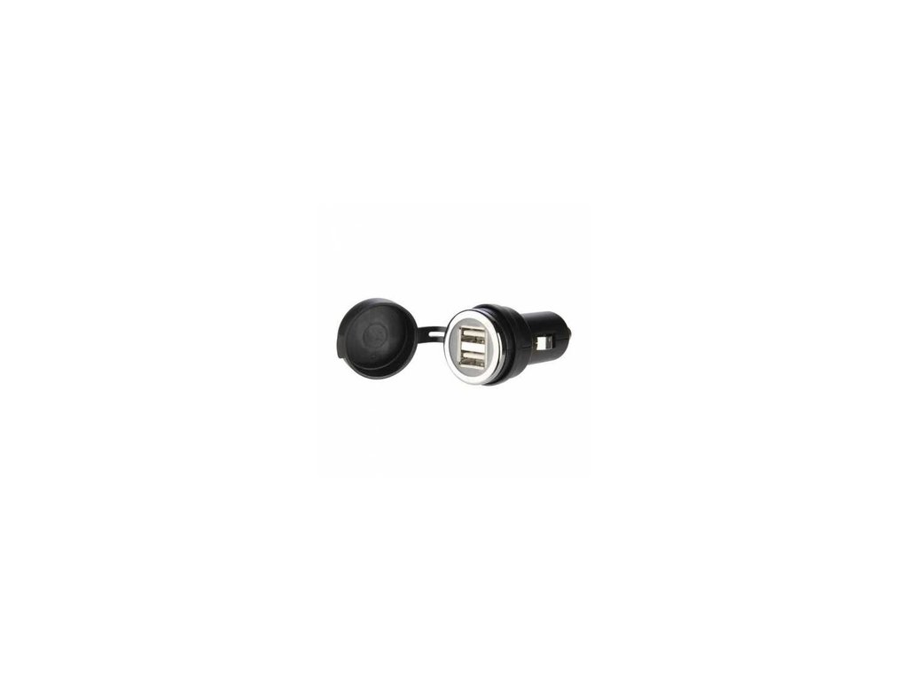 Detailní popis USB dvojzásuvka adaptér k nabíjení mobilů, navigací, interkomůZásuvka na motorku USB 20 mm - velká - rozměr autozásuvky