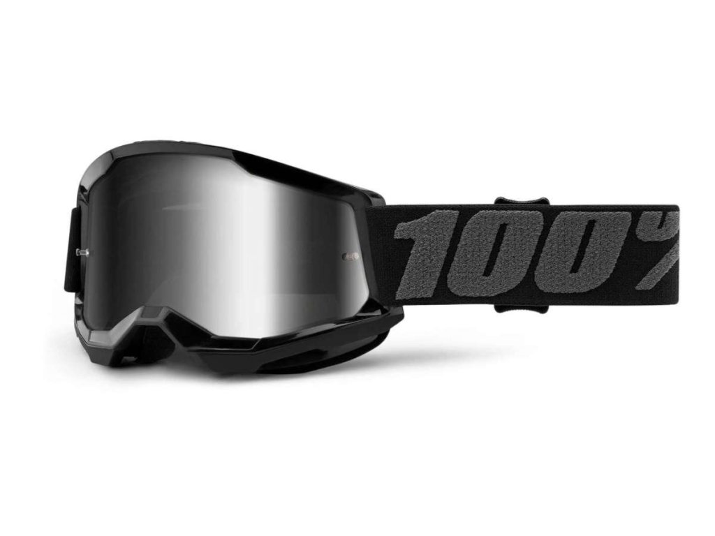 100% MX brýle STRATA 2 dětské brýle černé, zrcadlové stříbrné plexi