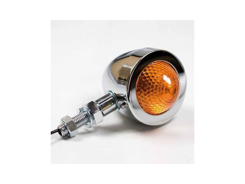 Blinkr Bullet na motorku, oranžové sklo, chrom, dlouhé, M10