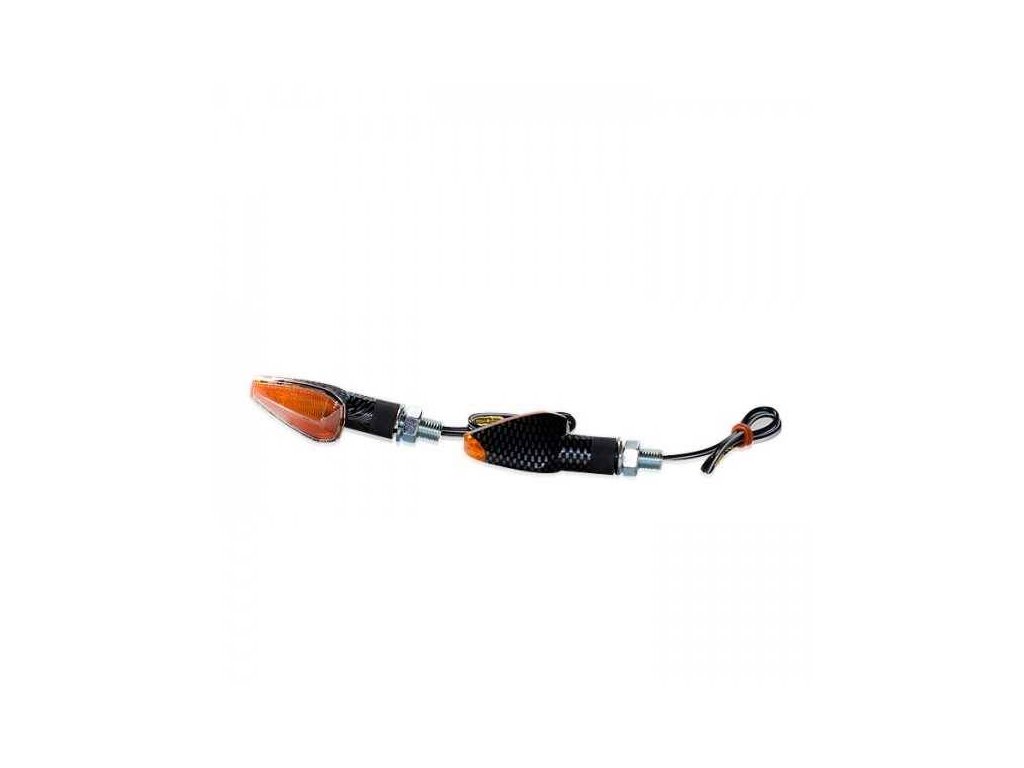 Blinkr Peak na motorku, vnější čiré, vnitřní oranžové, karbon, krátká, M10