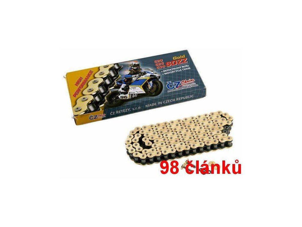 ČZ řetěz 525SDZZ barva zlatá, 98 článků včetně nýtovací spojky RIVET