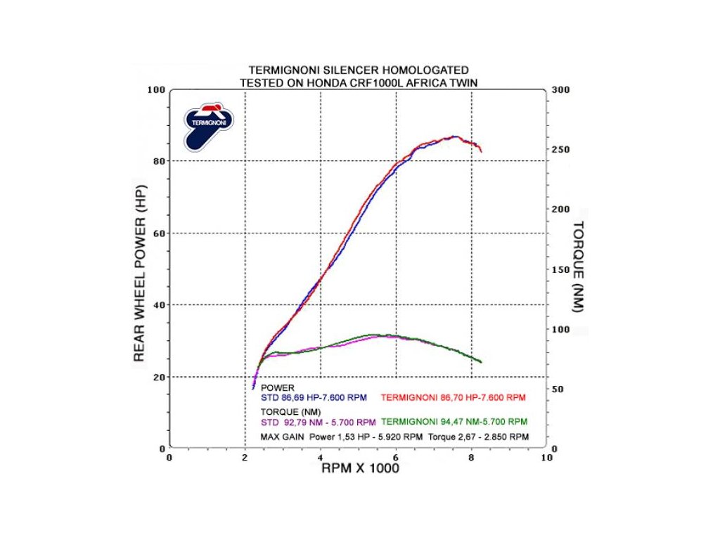 Nárůst výkonu 1.53 hp při 5.920 ot/min a kroutícího momentu 2,67 Nm při 2.850 ot/min