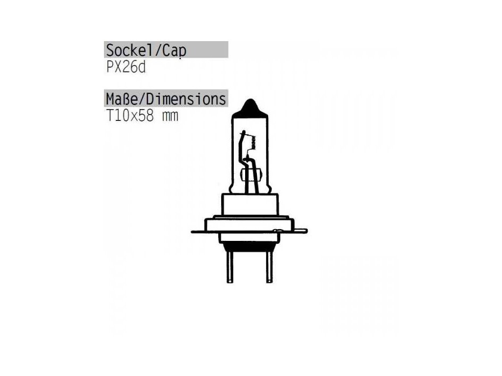 Detailní popis Žárovka hlavního světla 12V55W, H7, +50%, Px26d, O=10x58 mm- 12V 55W