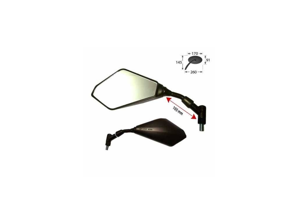 Zrcátka na motorku 126, plastová univerzální, černá matná zrcátka se závitem M10